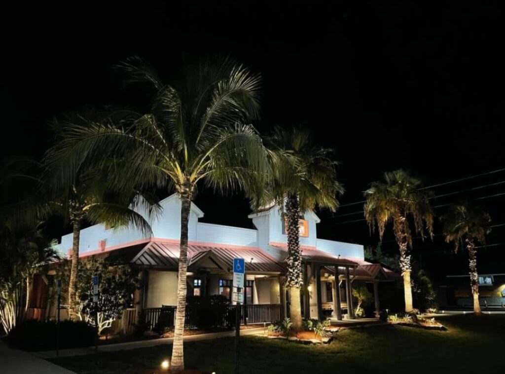 When making a strong first impression, you must pay special attention to your business with commercial outdoor lighting in Tampa and Apollo Beach, FL. Well-lit businesses attract a strong base of customers and clients through their overall beauty and the lure of exterior lighting solutions in Riverview, FL, whether on your sign or for the unique architecture of your building, creating attention even in the darkness and allowing your business to be used for longer business hours through nighttime outdoor use.